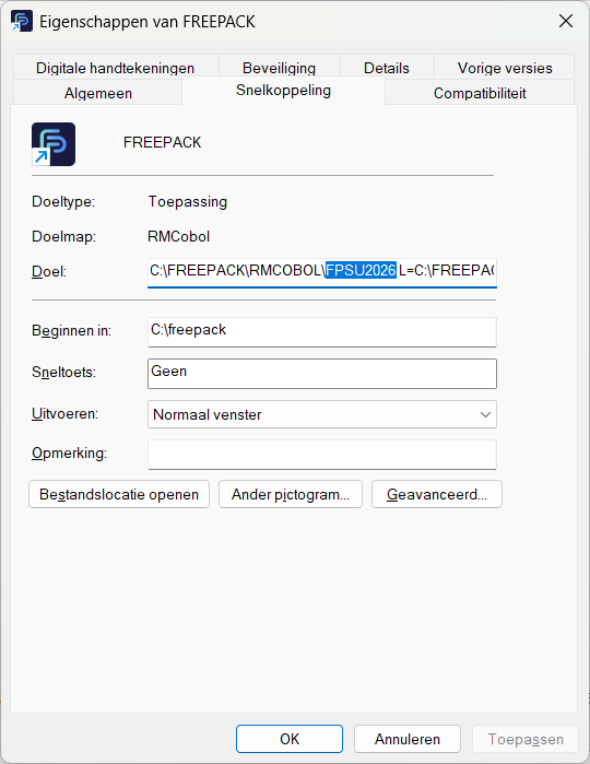 – Geen snelkoppeling met de naam Freepack aanwezig,